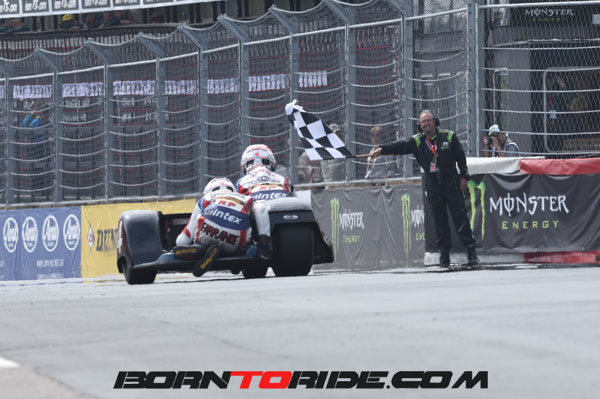 Ben and Tom Birchall took their fourth career TT win on Friday with victory in the second Sure Sidecar race at the 2016 Isle of Man TT Races, fueled by Monster Energy.
