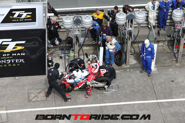 Hutchinson grabbed the lead on the road on the second lap but he was unable to make any inroads into Dunlop’s time and all the way round the lap, the Ulsterman’s advantage grew. Indeed, with yet another new outright lap record of 133.962mph, Dunlop led his BMW rival by a commanding 9.2s as they made their first pit stop at the end of the lap.