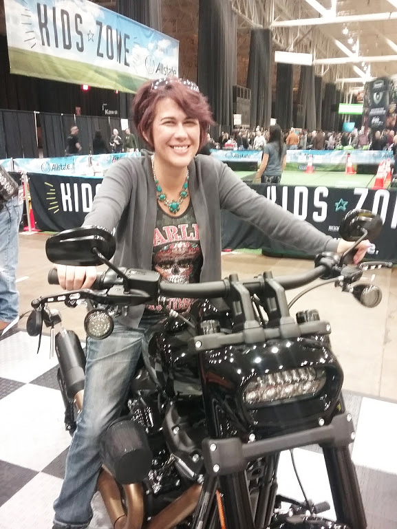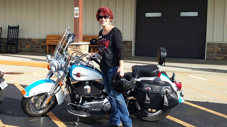 After Sarah started working for a motorcycle dealership, others encouraged her to take a safety riding class. She passed the class, got her license and bought a Honda Shadow as her first bike. She’s been riding for eleven years now and has a Harley-Davidson Softail Deluxe Heritage.