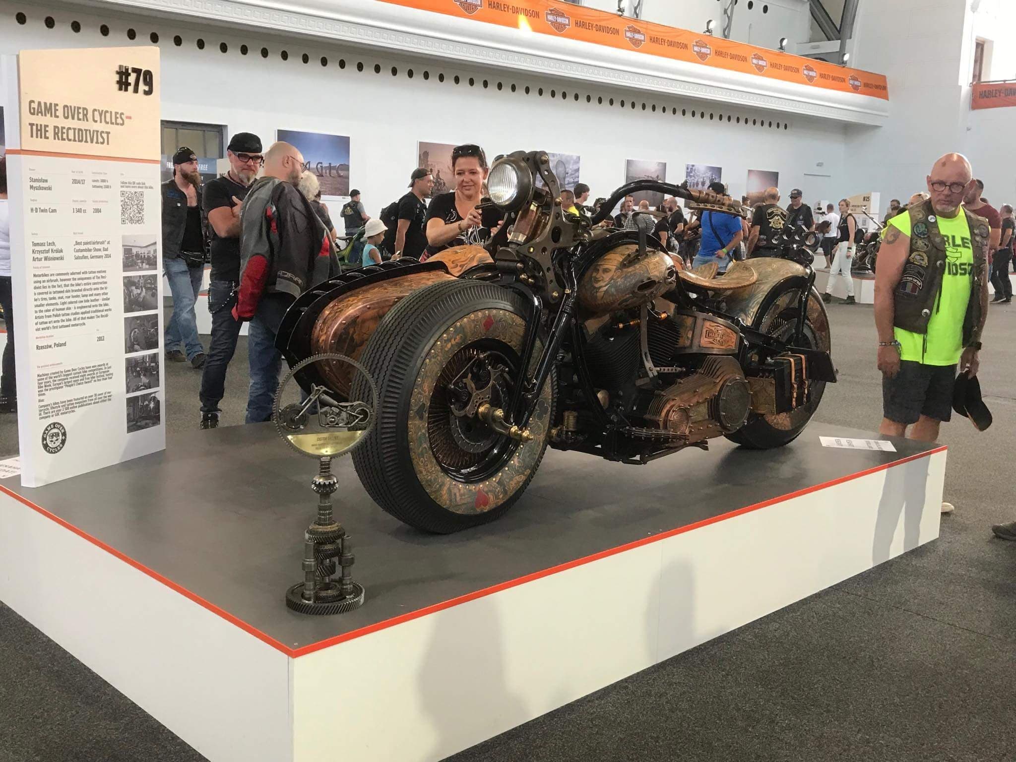 Game Over Cycles was given the opportunity to present two of their motorcycles during the event: The Recidivist and Fat Max. The Recidivist is world’s first tattooed motorcycle. This custom Harley has already won many international awards, including 1st place in the “Most Unusual” class in the Rat’s Hole Custom Bike Show, the oldest and most prestigious custom bike show in the world organized at the Sturgis® Motorcycle Rally™, the biggest motorcycle rally in the world (08.2017, USA).