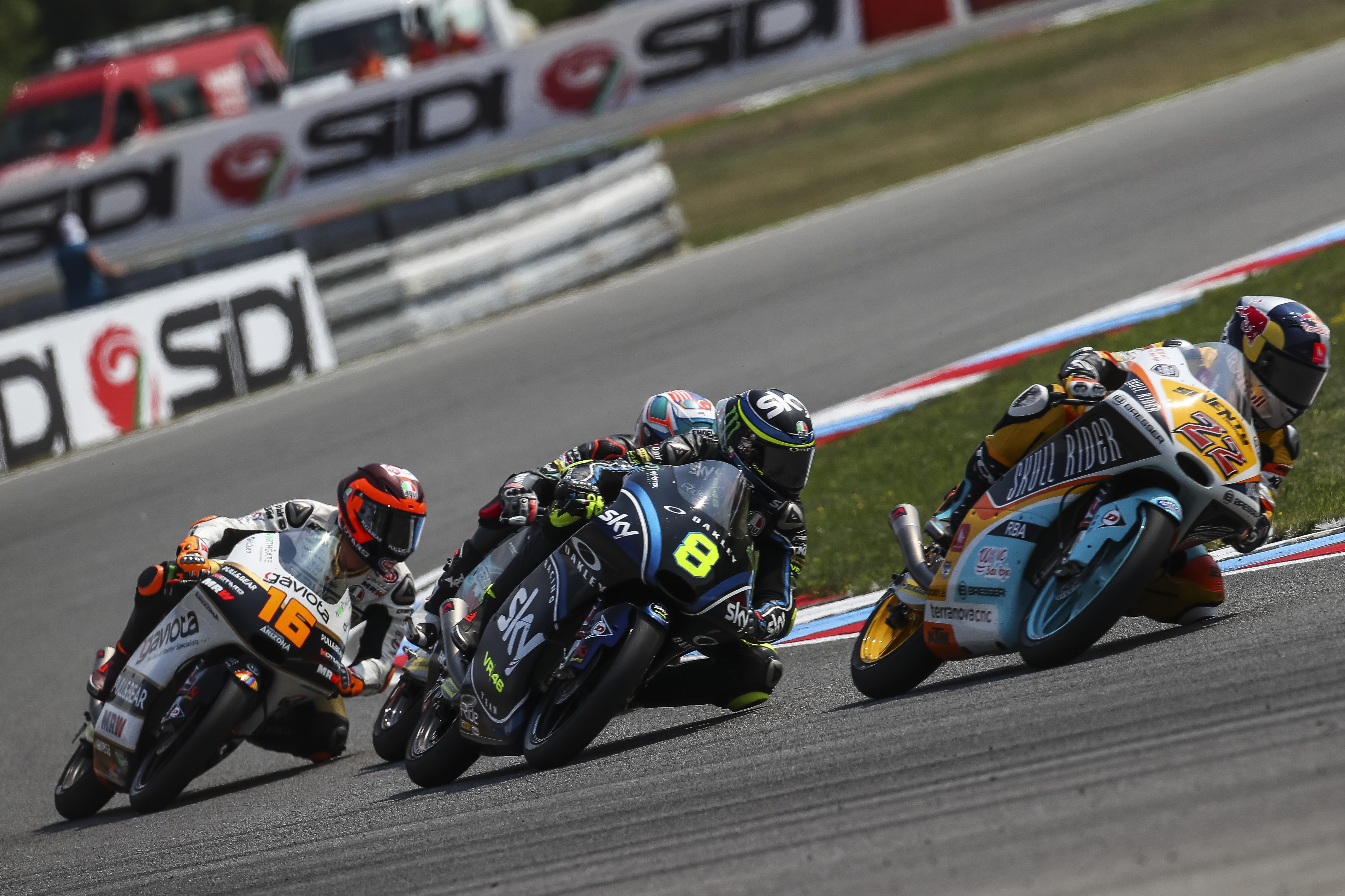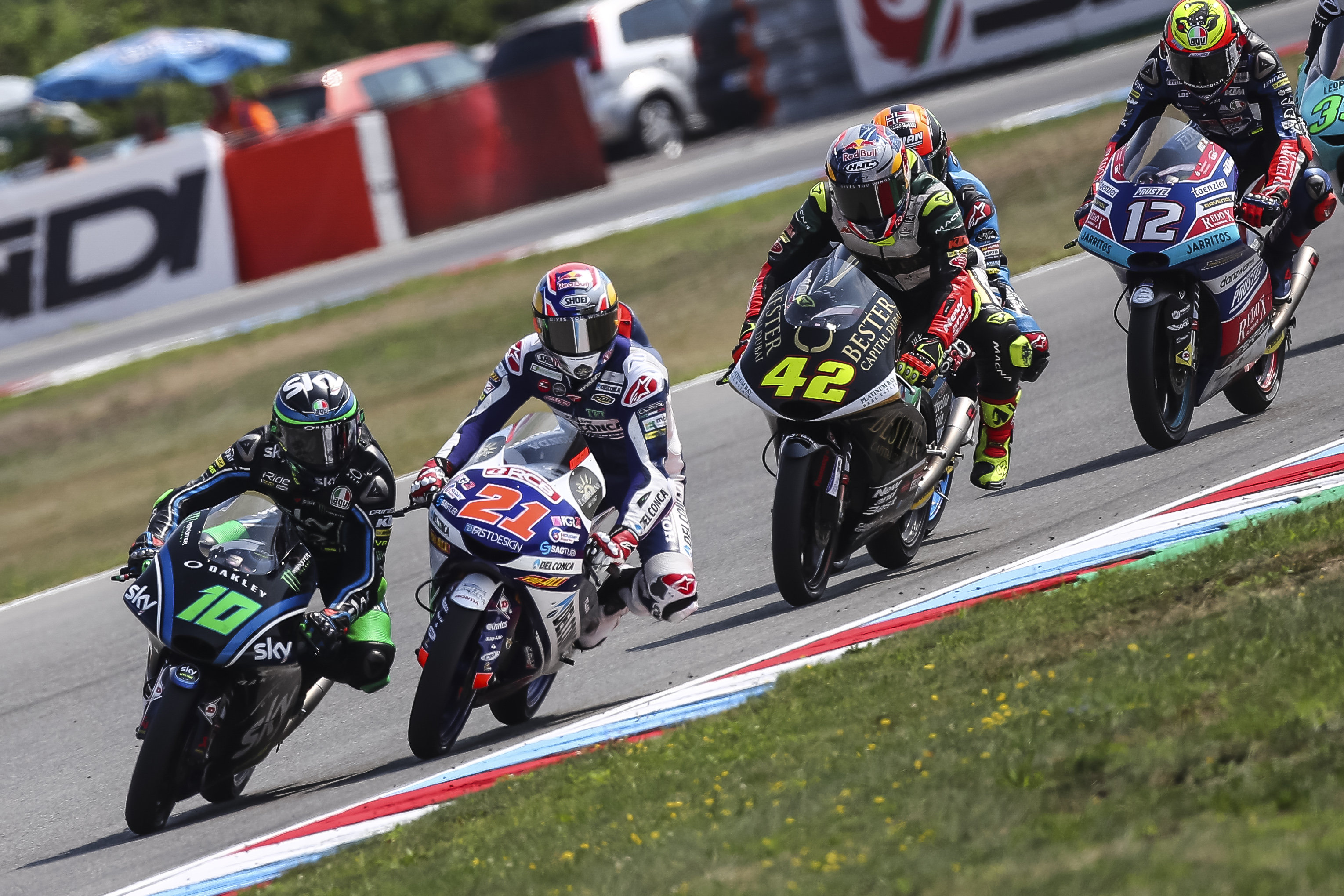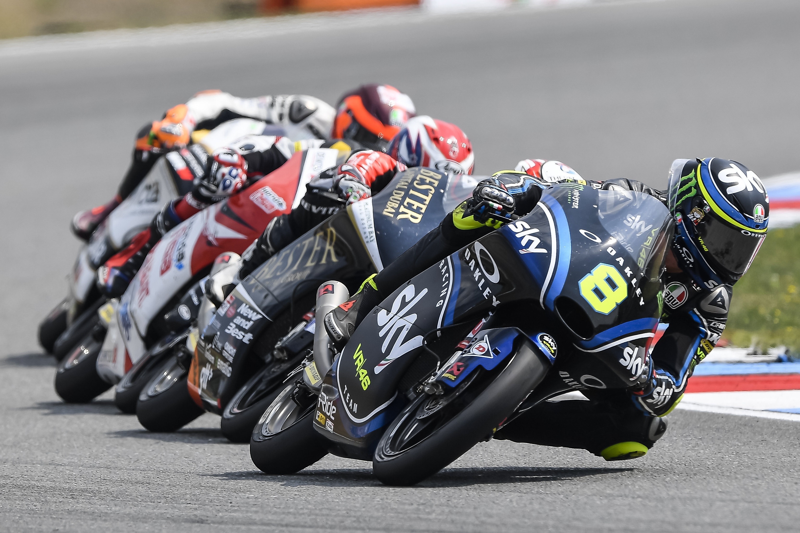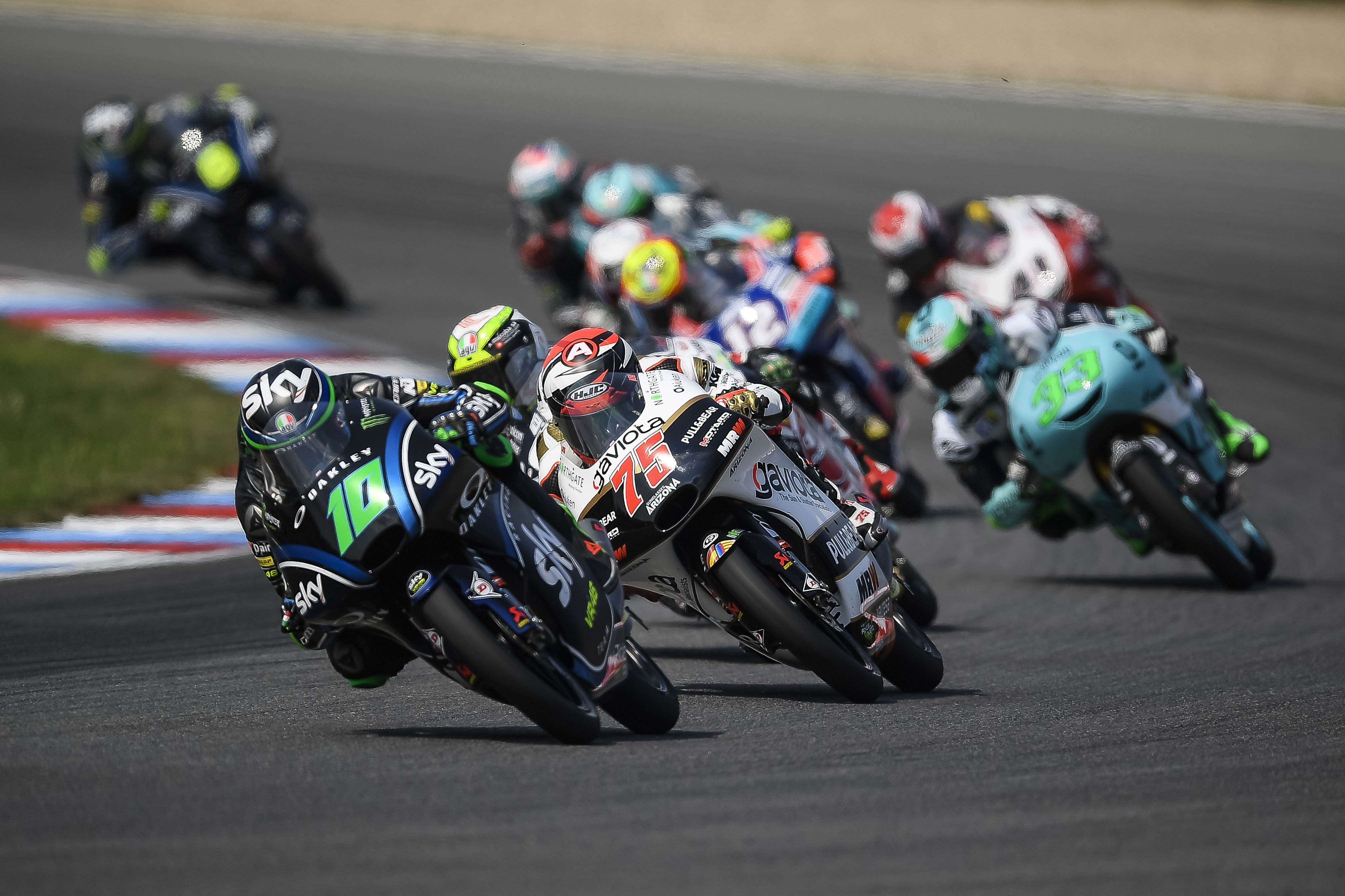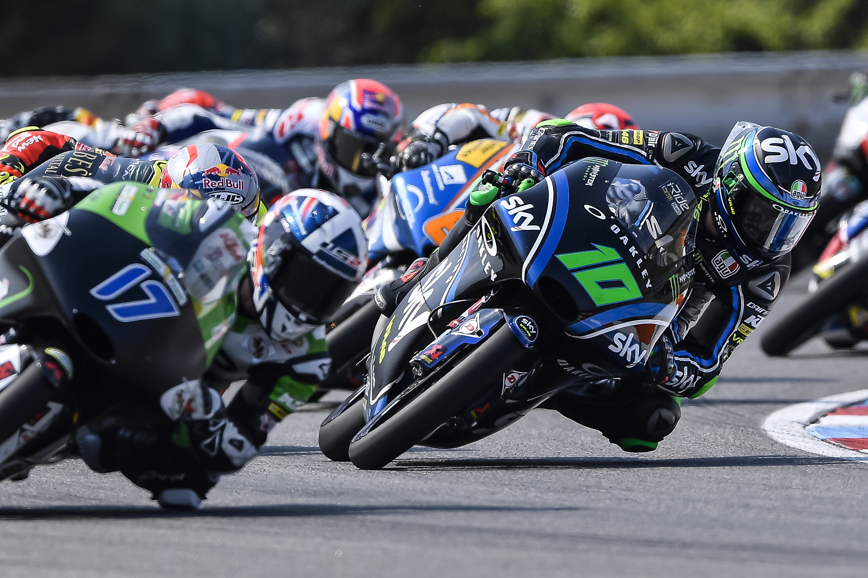Brno (Czech Republic), August 5, 2018 – Dennis Foggia closes the GP of the Czech Republic, on the historic Brno track, as a protagonist. Started from the 13th box of the grid, the rider of the Sky Racing Team VR46 immediately was into the group of the strongest guys and, overtaking after overtaking, reaches the head of the race. In first position for several laps, he is forced to give up some places in the final lap and crosses the finishing line in 12th place with a gap of only 2.3 seconds to the podium.