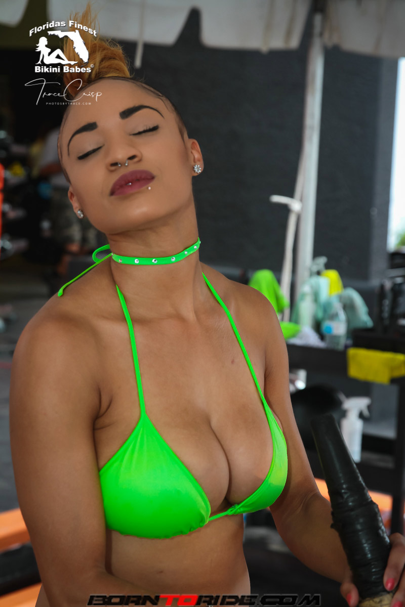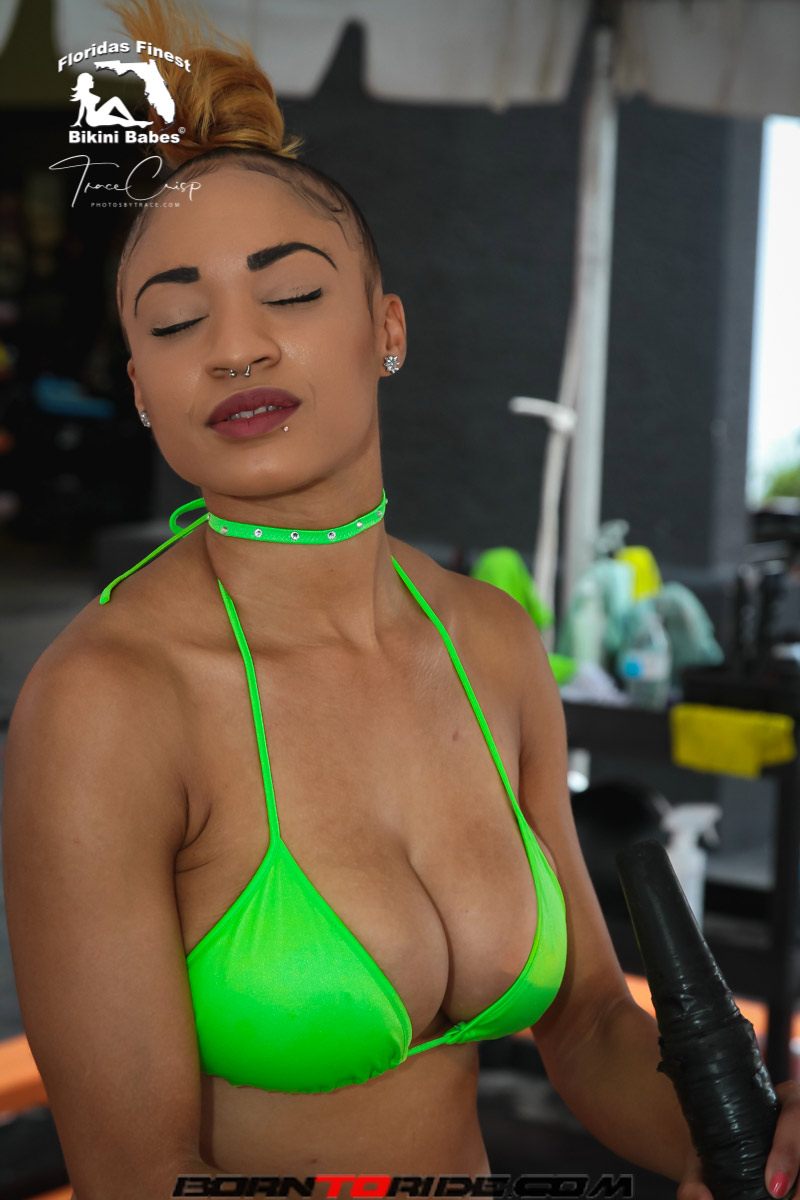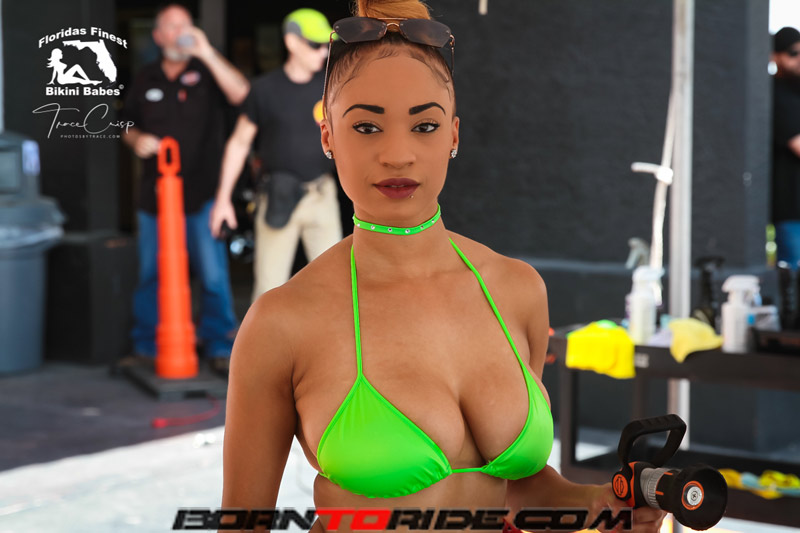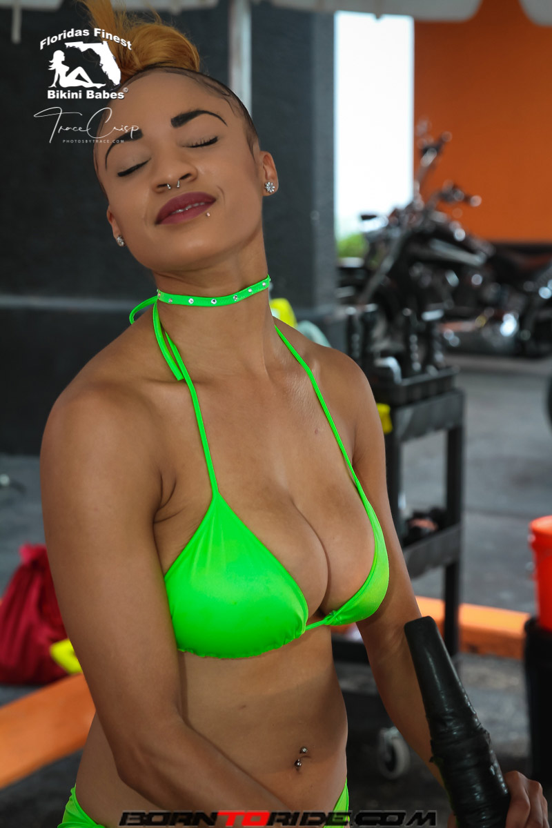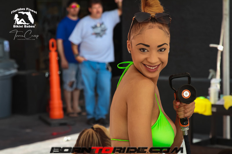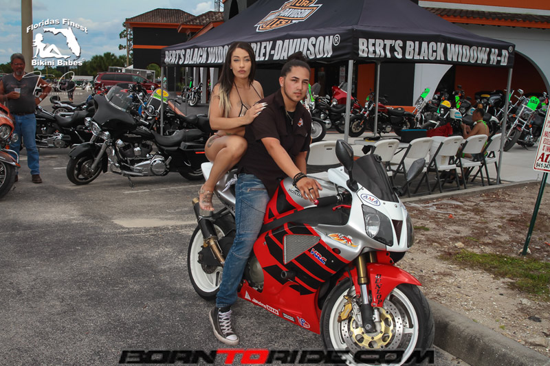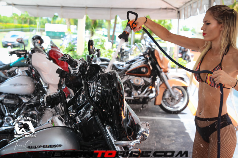 Photos by Trace for Born to Ride Magazine Babe of the Week .. Fathers Day Weekend Bikini Bike Wash at Bert’s Black Widow