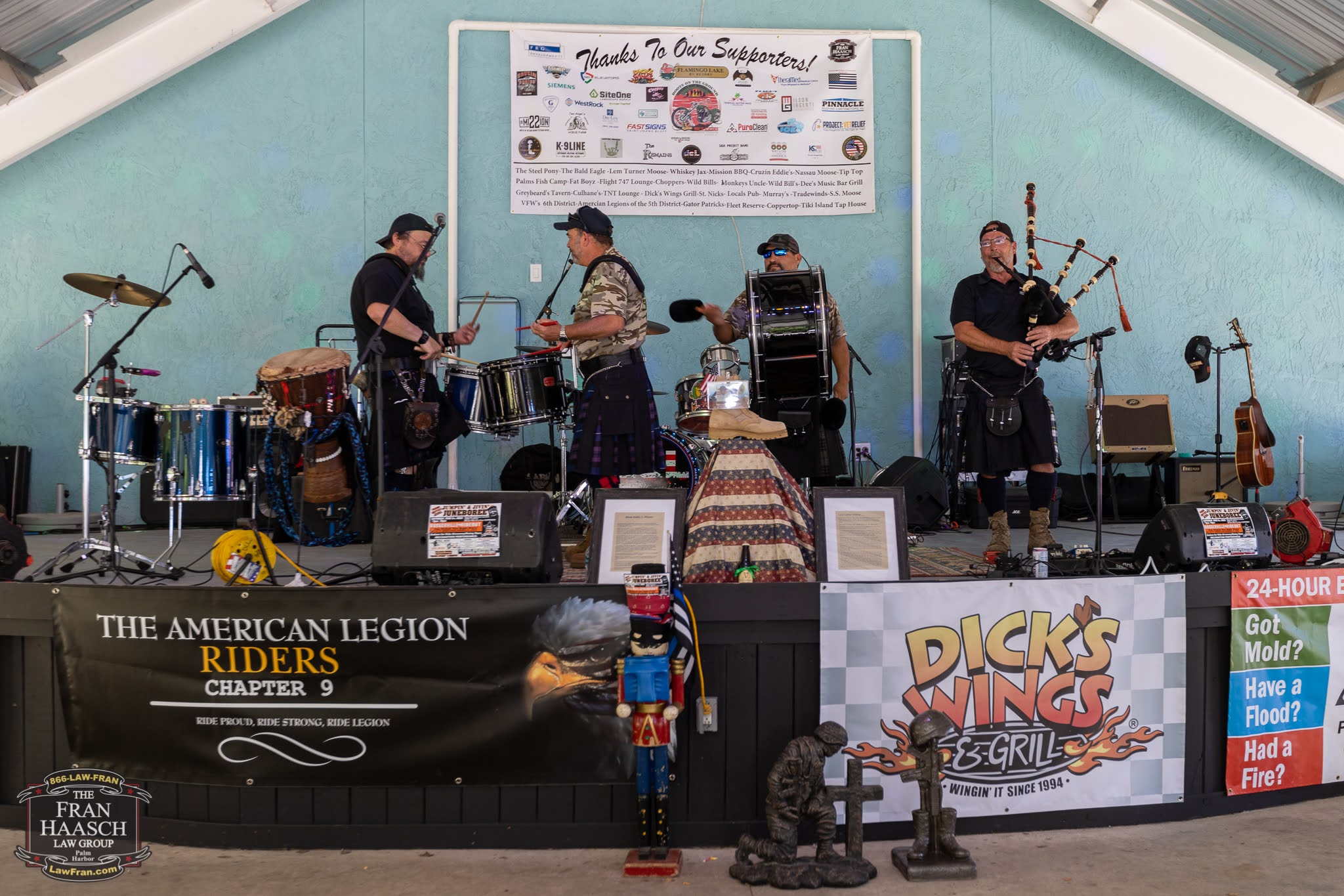 On Saturday, May 7, 2022 the American Legion Riders Chapter 9, Flamingo Lake RV Resort and Dick’s Wings, in support of our American Veterans, Fallen Heroes and their Families, hosted the 9th ANNUAL BOOTS ON THE GROUND POKER RUN AND CONCERT. The purpose of the event is to benefit the K9s For Warriors Foundation, K9 Line, Inc, The Veterans Village of NE Florida, Mission 22, Project Vet Relief, The Florida Fallen Heroes Memorial Fund, and Wreaths Across America. 44 different Poker Stops, Live Music, Jeep Poker Run, Vendors, Food Trucks, Golf Cart Poker Run and so much more.